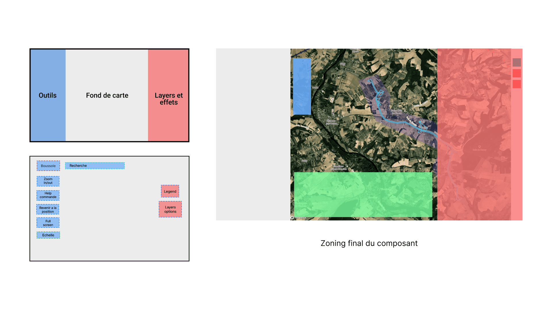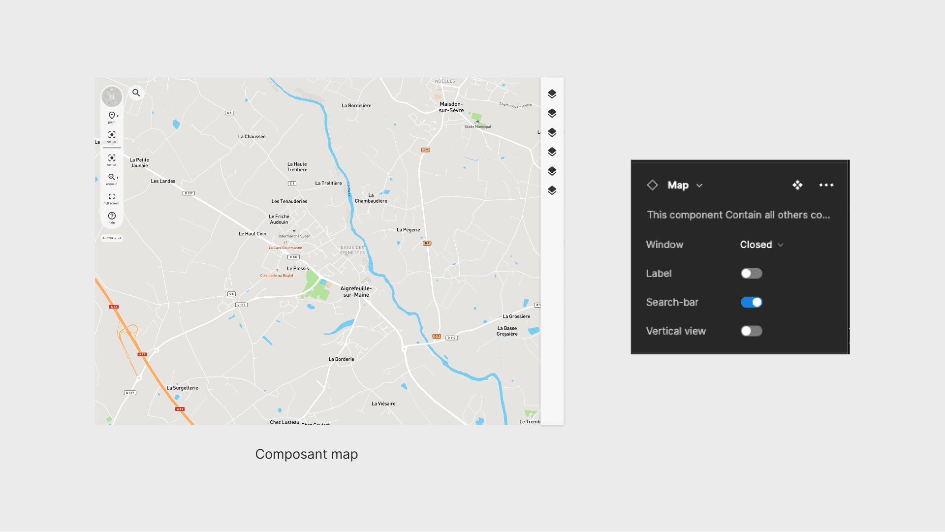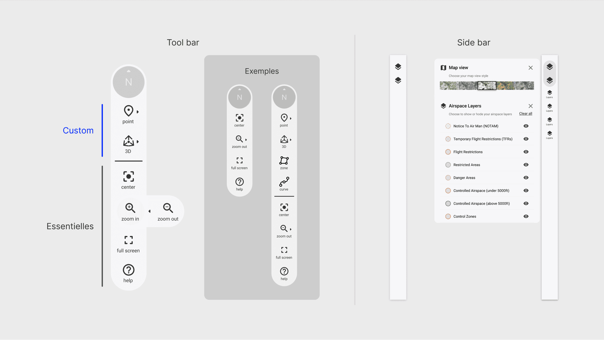 La conception d'un composant cartographie, présentait un intérêt majeur pour explorer la capitalisation et conception de composants Figma agnostiques, la cartographie étant l'outil de base de tout produit avionique.
