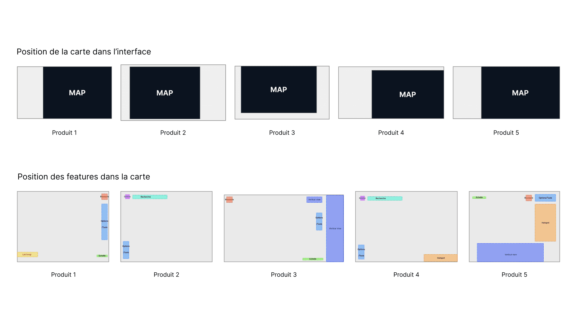 L'étude des différentes cartographies utilisées dans les produits en production à permis d'identifier les fonctionnalités indispensables à une cartographie et les fonctionnalités spécifiques aux besoins projets.